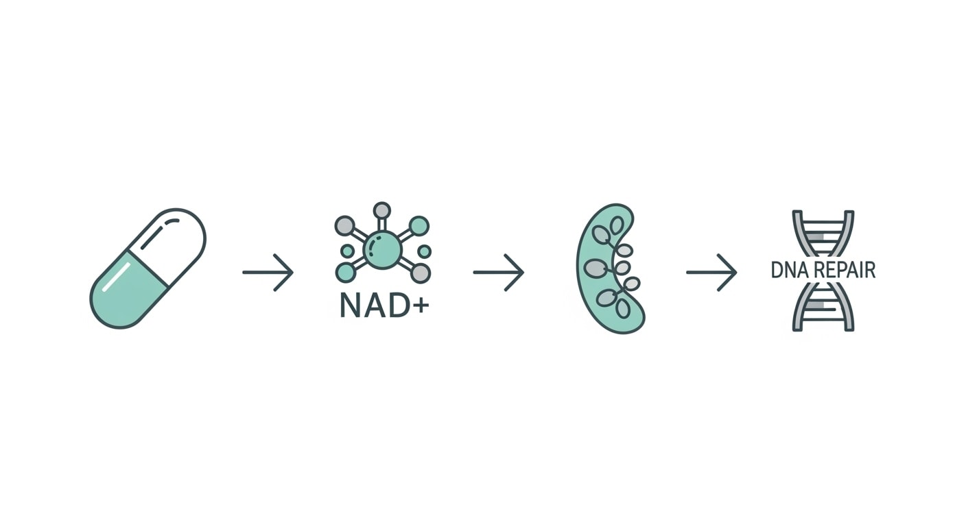 NMN is a direct precursor to NAD+ (nicotinamide adenine dinucleotide). NAD+ is a coenzyme that your body needs for energy production, DNA repair, gene expression, and other vital processes. This energy production occurs at the cellular level, making NAD+ essential for cellular energy production.